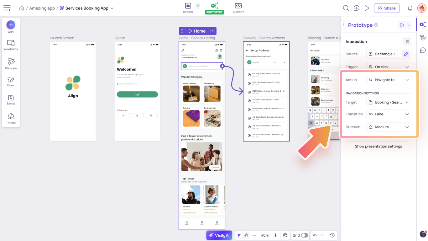 Make your Visily prototype feel more interactive by configuring triggers, navigation paths, overlay effects, and scroll behavior.