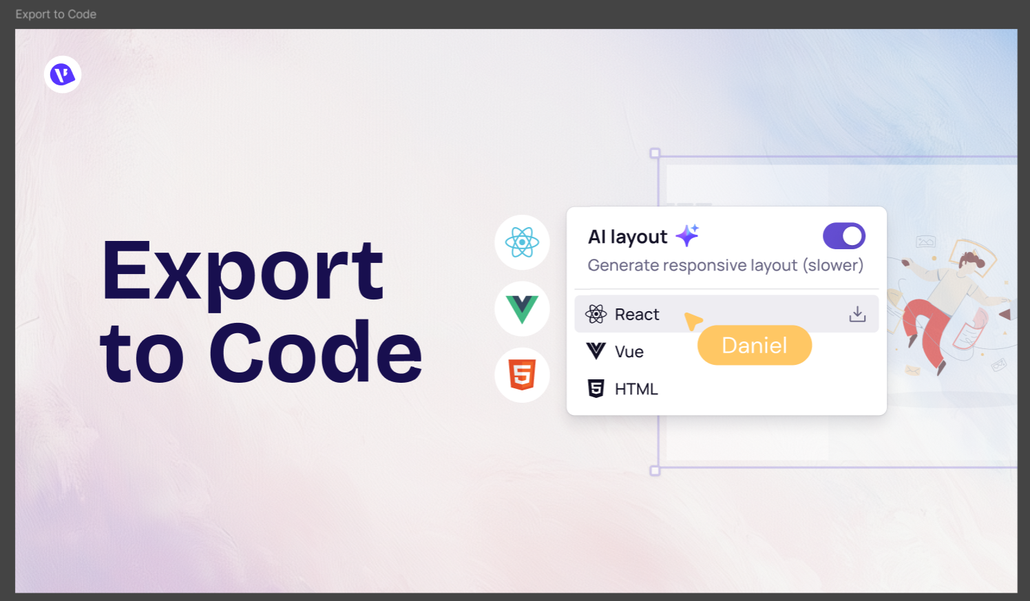 During export, you can enable AI Layout to generate responsive layout code for your designs.